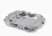 Keep your keys and wallet handy in the stunning display Alligator Catchall. Large alligators seemingly chase each other around the edge of this piece, creating a unique border in the process. Handcrafted in Arthur Court's signature aluminum, these statuettes feature remarkable detail in their scaly bodies and realistic snouts.