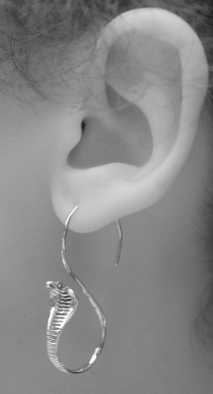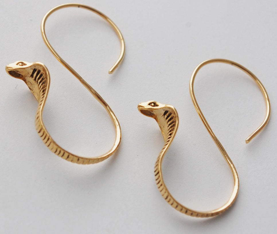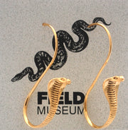 14k gold over Solid Sterling silver Cobra snake earrings with 14k gold over sterling silver ear wires. They are mounted on a fold over Natural History card. Actual length 1 3/4"