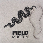 Sterling silver snake earrings mounted on a foldover Natural History card. Actual length 1 3/4" Educational information on back of card.